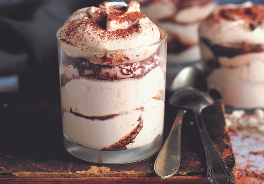 3. In 4 individual serving cups place half of the soaked biscuits and press into the base of the cups. Spoon half the mascarpone mixture on top, followed by half the grated chocolate. Repeat to form the second layer. Cover and chill for at least 2 hours (ideally overnight) for the mascarpone cream to set. Remove from the refrigerator when ready to serve.